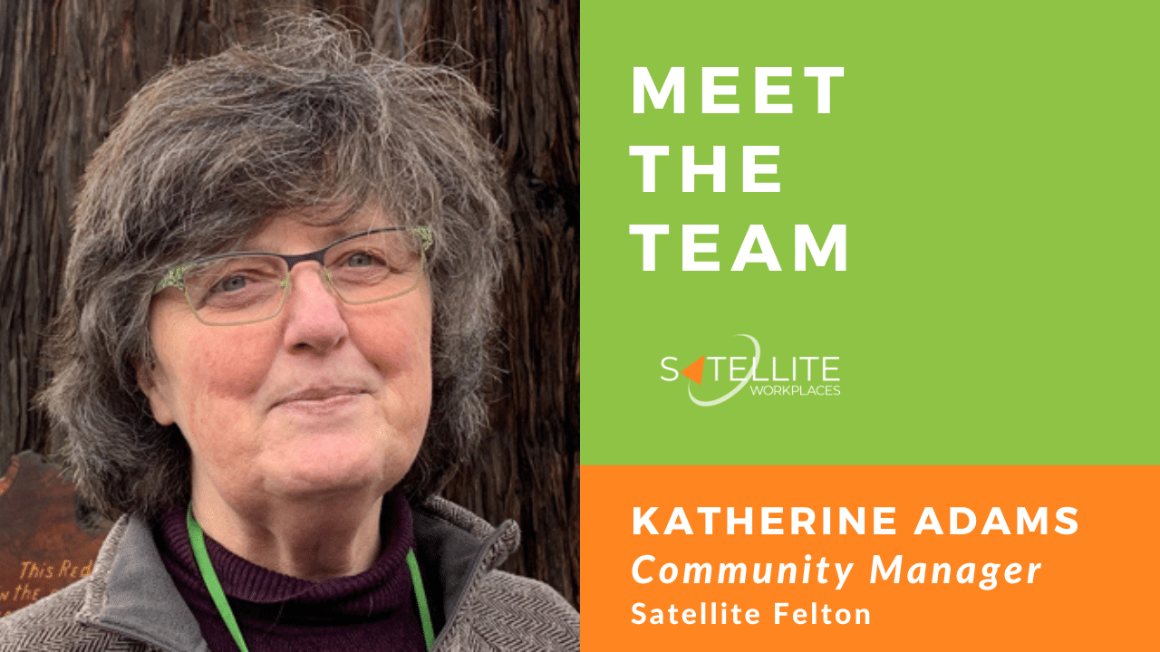 I’m a native Californian. Home is the Monterey Bay and Santa Cruz Mountains. I found my coworking spot at Satellite Scotts Valley in 2014, where owner Barbara Sprenger was stationed. We chatted about my becoming a community manager for that location, so I did. I am now, 9 years later, moving on to new adventures, though sad to leave.